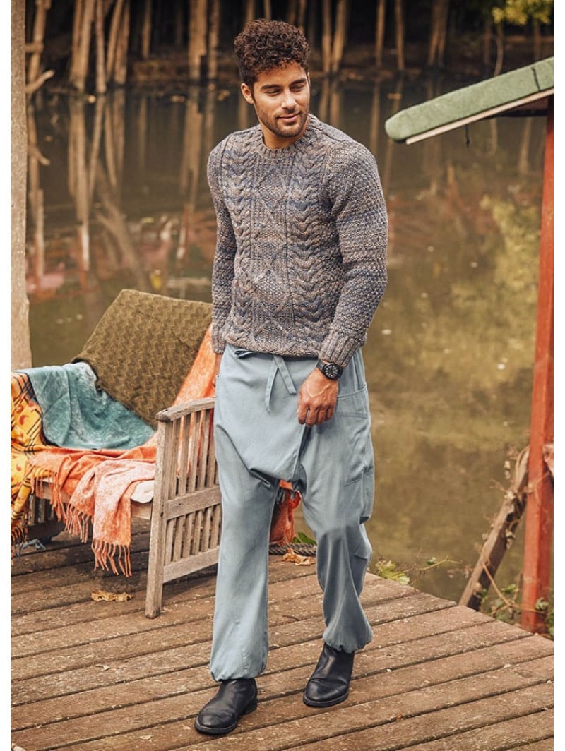 Wrap Front and Pocket Detailed, Adjustable Tie Waist, Drop Crotch Pants