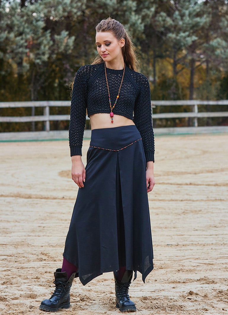 Asymmetrical Hem, Binding Detailed Waistband, Flared, Midi Skirt