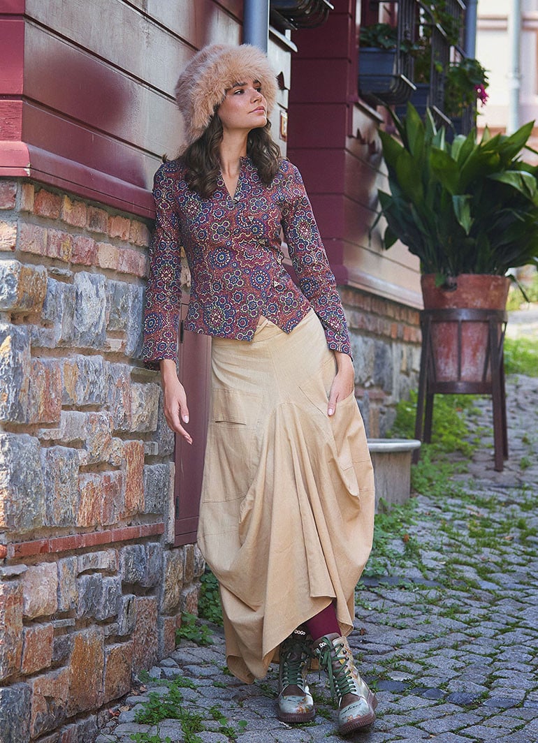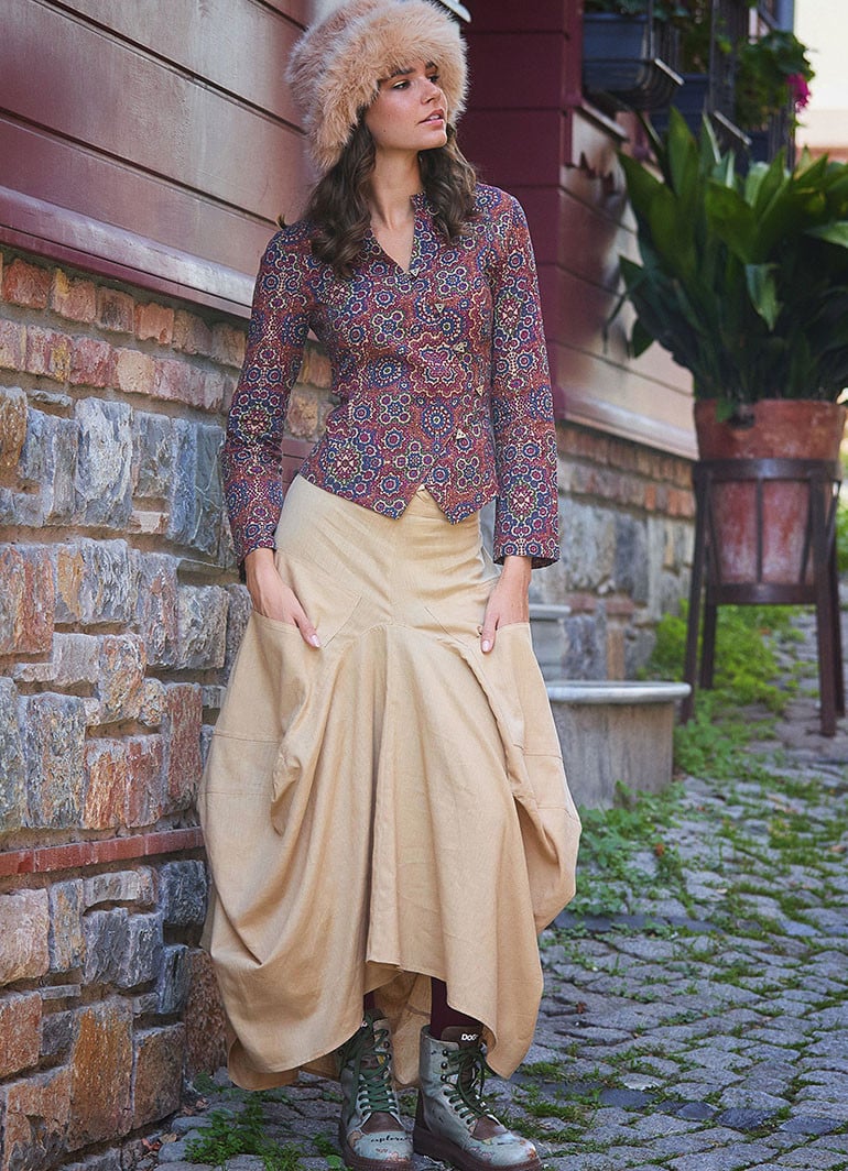 Oversized Pockets, Elastic Waist, Hem Detailed, Boho Style, Long Skirt