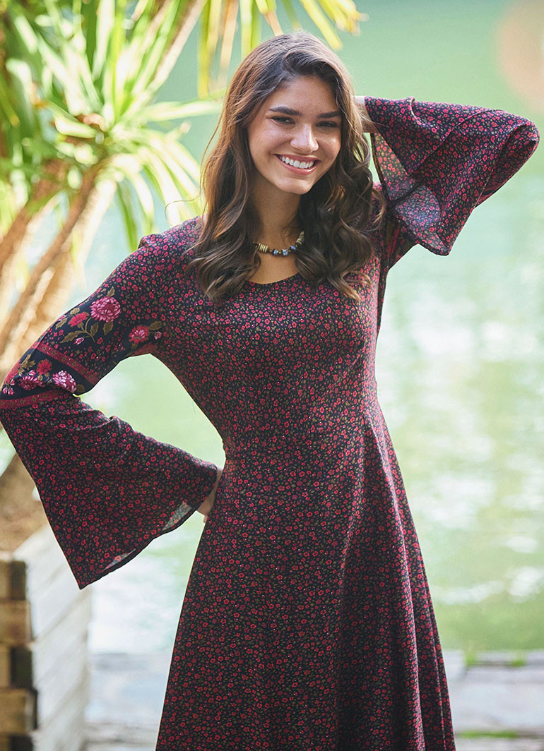 100% woven viscose. It is a fabric woven from natural cellulose obtained from beech trees. It is very light and flowy. It does not contain polyester and does not make you sweat. You can wash it in the washing machine at 30 degrees.