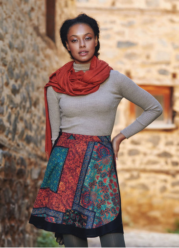 Ethnic Printed Asymmetrical Hem Flared Midi Skirt