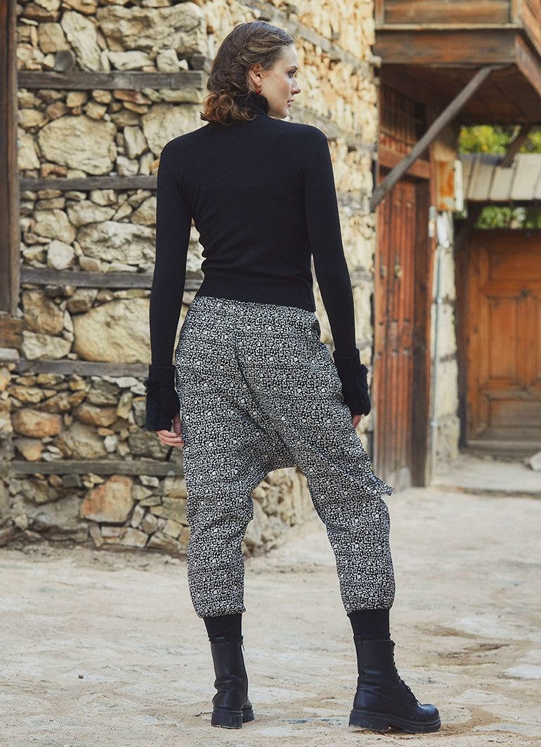 Elastic Ankle Cuffs, Side Pockets, Button Waist Closure, Harem Pants