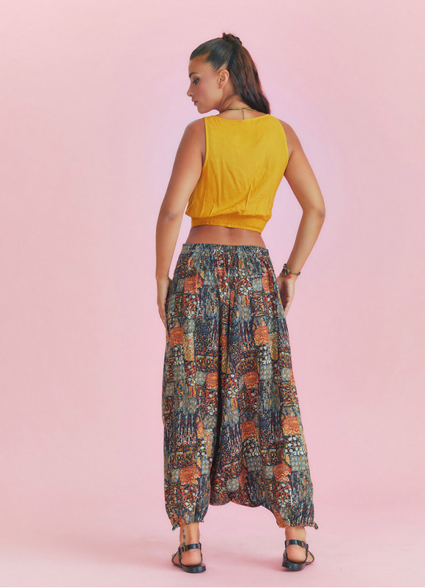 Khaki, Print Adjustable Hem, Wraped Harem Pants