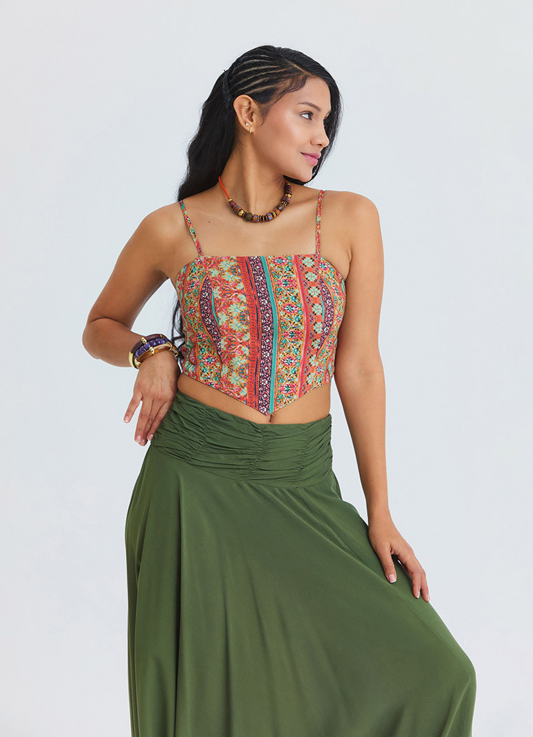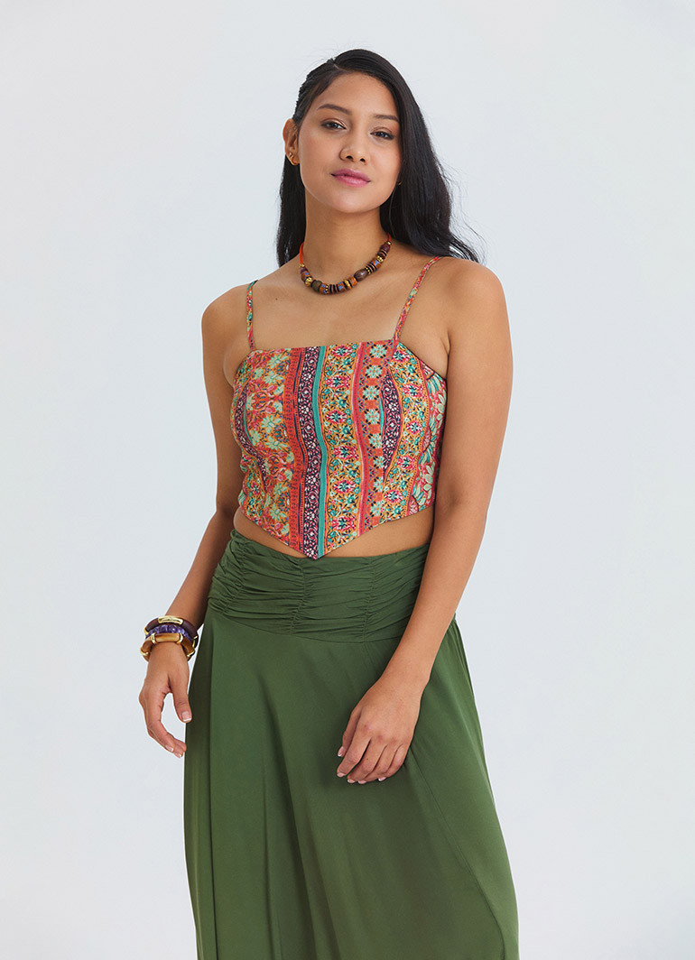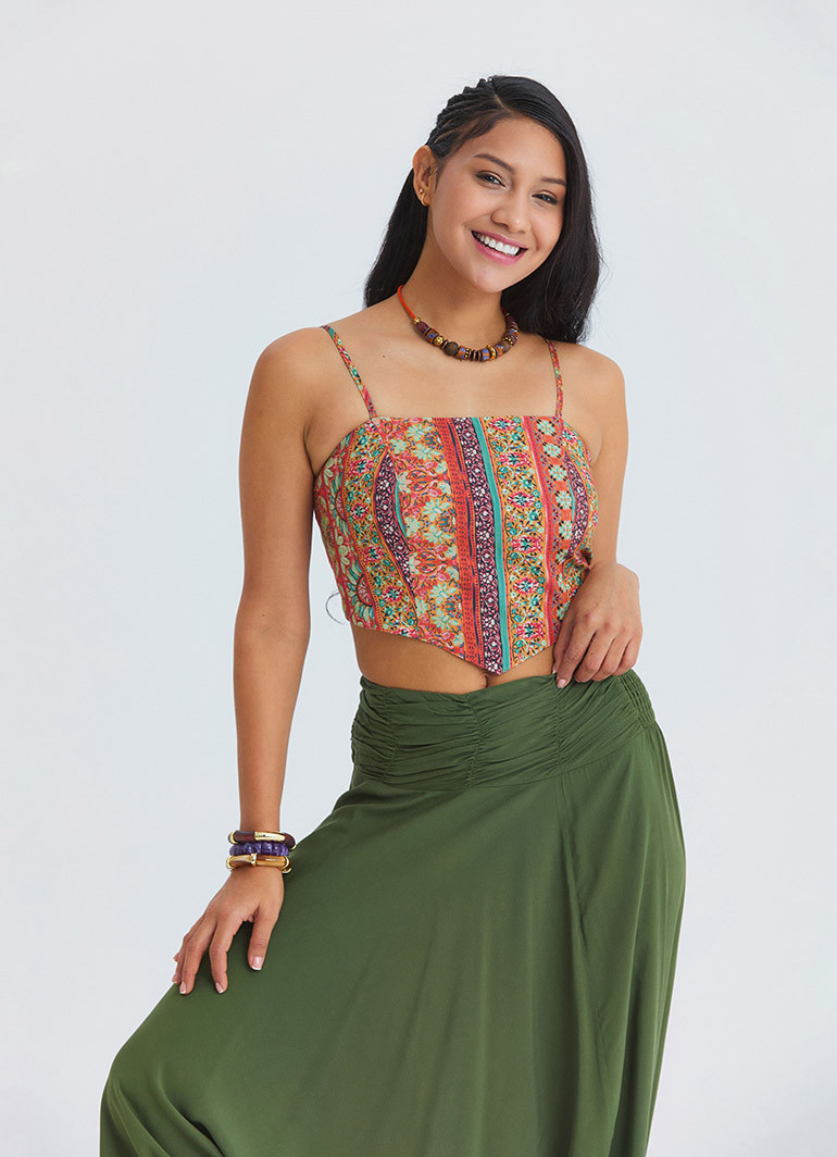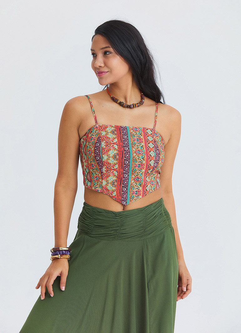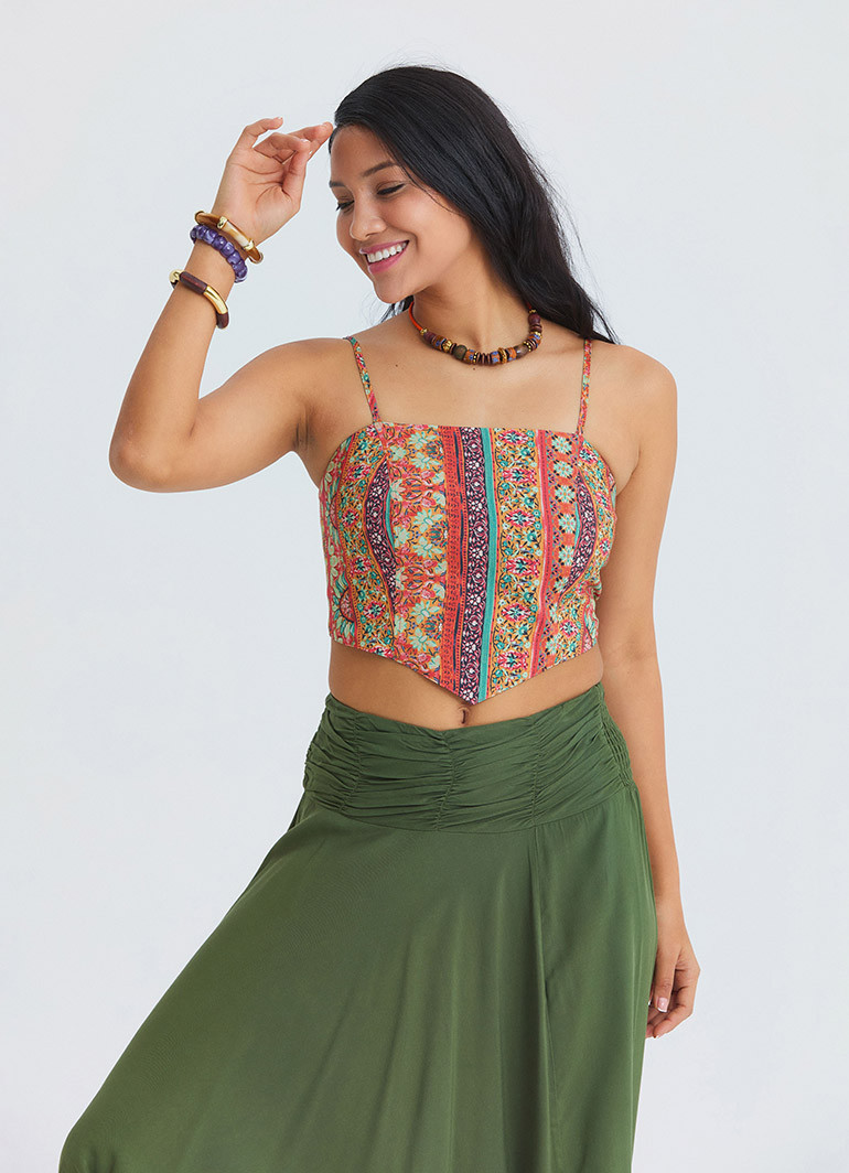 Thanks to its adjustable straps and elastic back detail, it adapts easily to your body shape. The crop cut pairs perfectly with high-waisted skirts, shorts, and trousers, making it a versatile choice for bohemian style, ethnic fashion, and summer blouse lovers.
