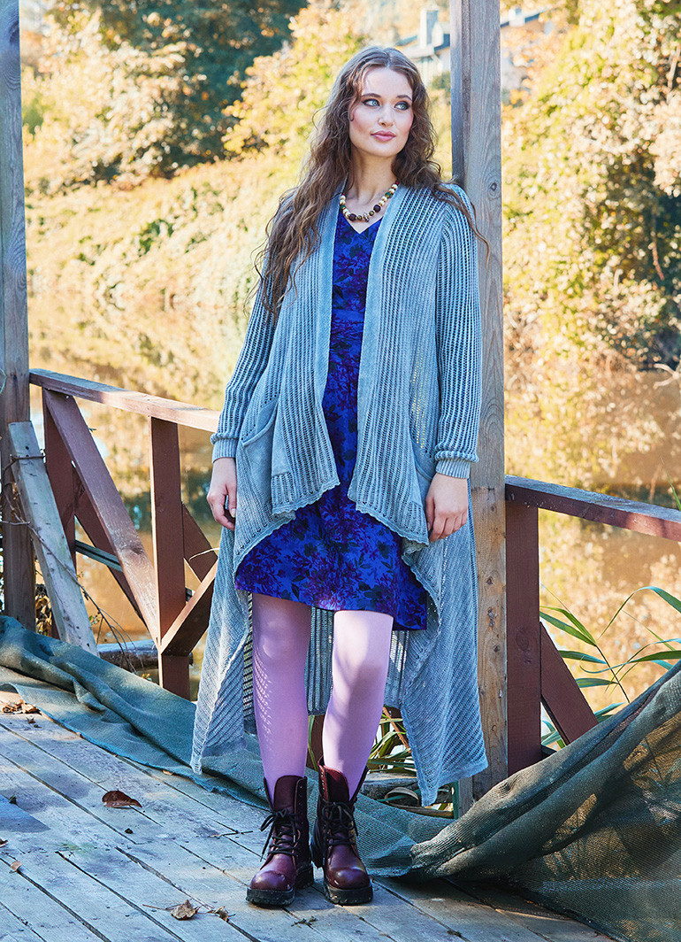 Elevate your wardrobe with the Asymmetrical Cut Gray Bohemian Cardigan with Pockets. This statement piece offers effortless bohemian charm, perfect for layering during cooler seasons.