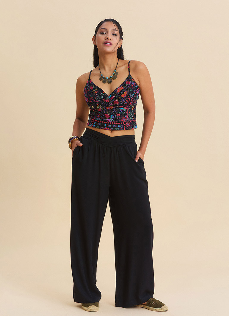 If you’re looking for trousers that stay stylish yet breathable in summer heat, the Black Women’s Summer Trousers with Wrap Waist & Cross Belt 7187 is a perfect match. The wrap-style waist and cross-belt detail create a more polished, flattering look in a single piece.