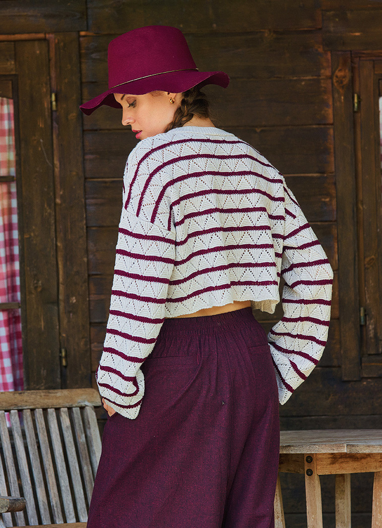 Elevate your winter wardrobe with the Crew Neck Above Waist Burgundy Striped Women’s Sweater 4747. Designed for both comfort and style, this sweater features a flattering above-waist crop and a chic striped pattern that effortlessly pairs with jeans, skirts, or layered outfits.