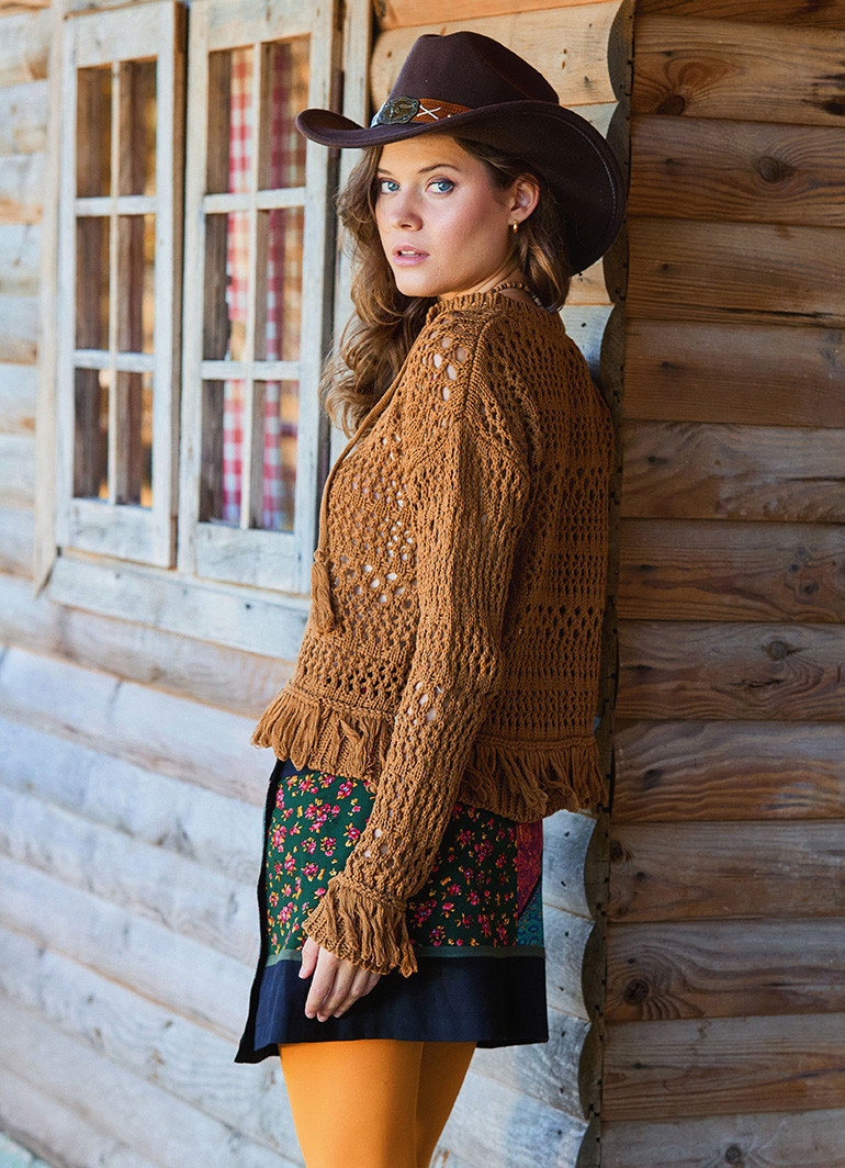 Crafted from a soft cotton-polyester blend, it provides a breathable yet insulating feel—perfect for crisp winter days. The openwork knit detailing adds a delicate, feminine touch, while the tasseled accents lend a subtle bohemian charm that elevates any outfit.