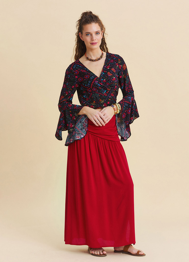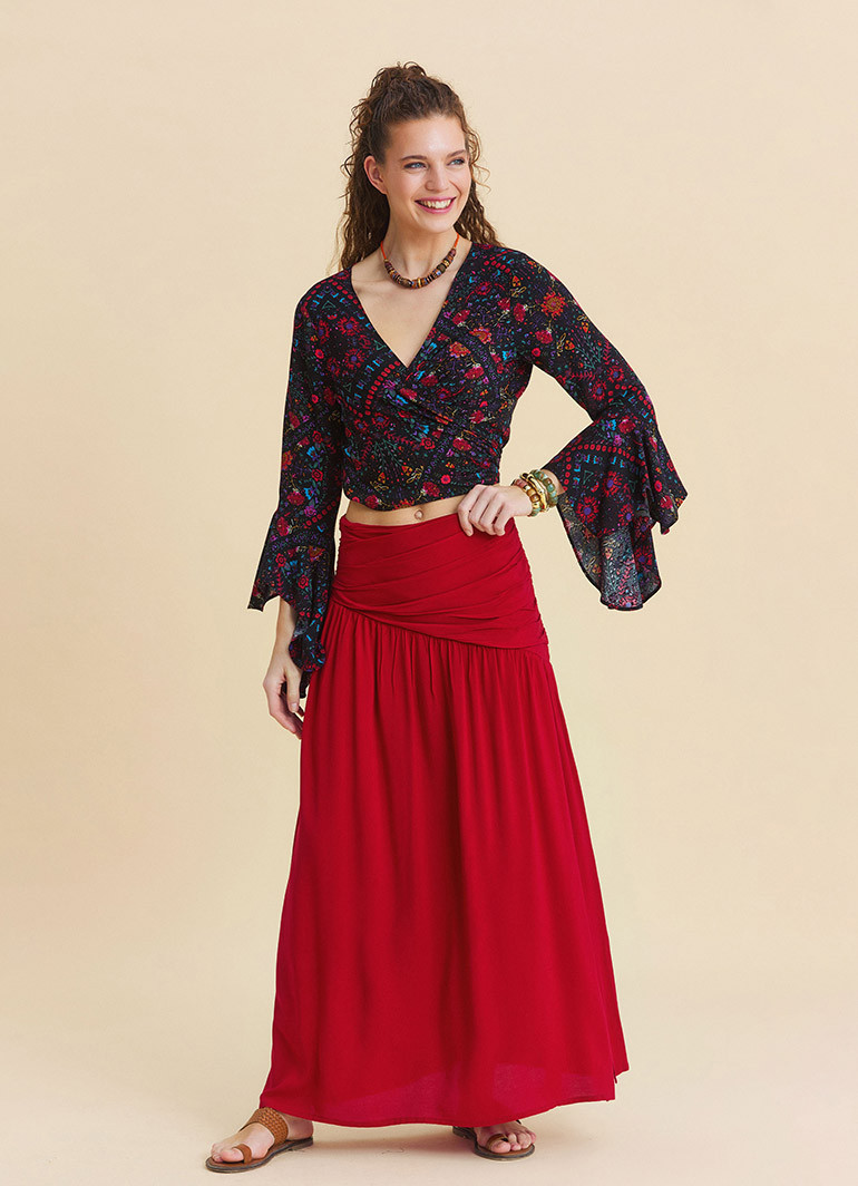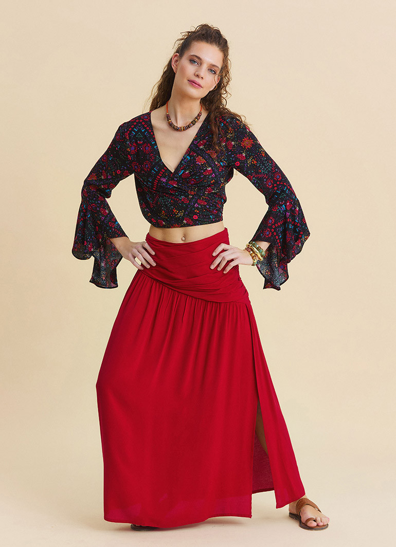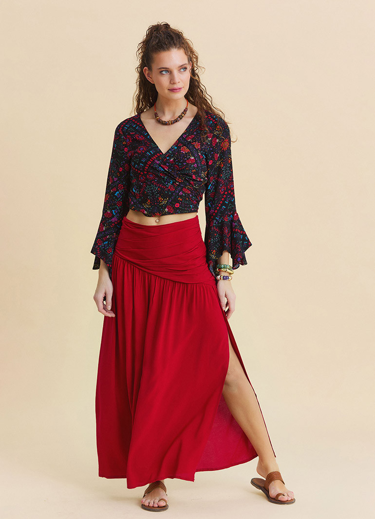 Perfect for those searching for a women’s long skirt, bohemian skirt, red maxi skirt, or slit summer skirt, this piece combines comfort and elegance in one timeless design.