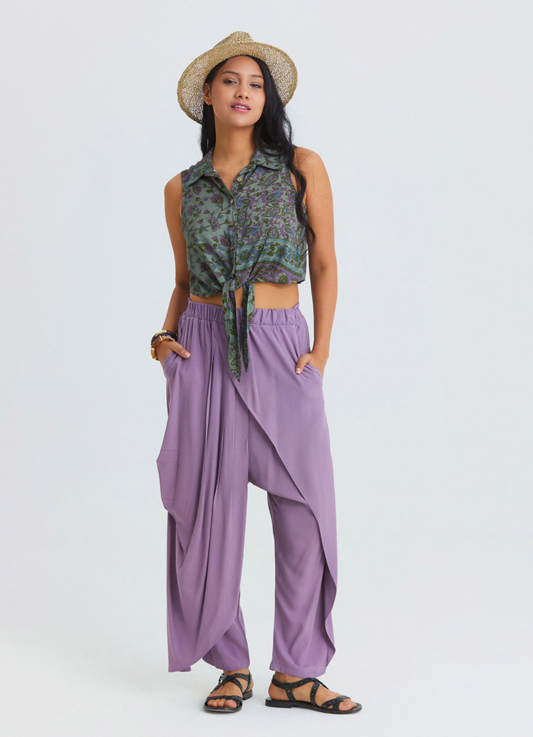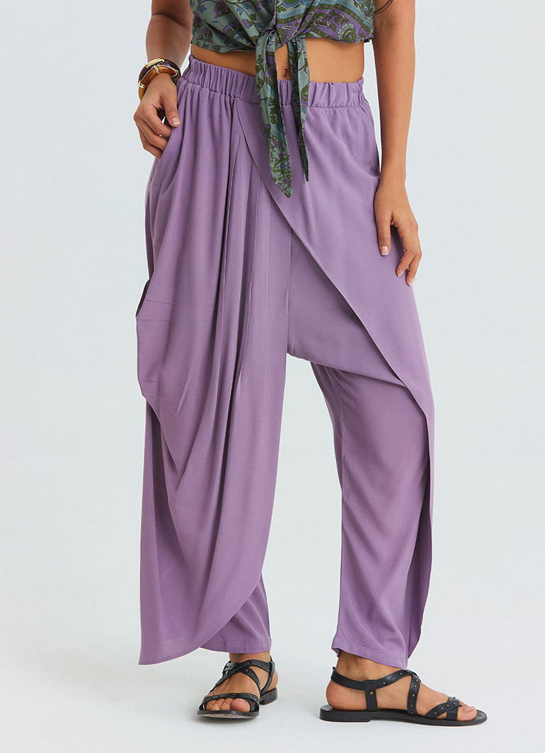 A fresh touch for your summer wardrobe: Elastic Waist Wrap Detail Lilac Women’s Relaxed Fit Pants 7174 offer effortless comfort with their flowy structure and wide-leg silhouette. The soft lilac tone adds a modern yet bohemian-chic vibe to your everyday combinations.