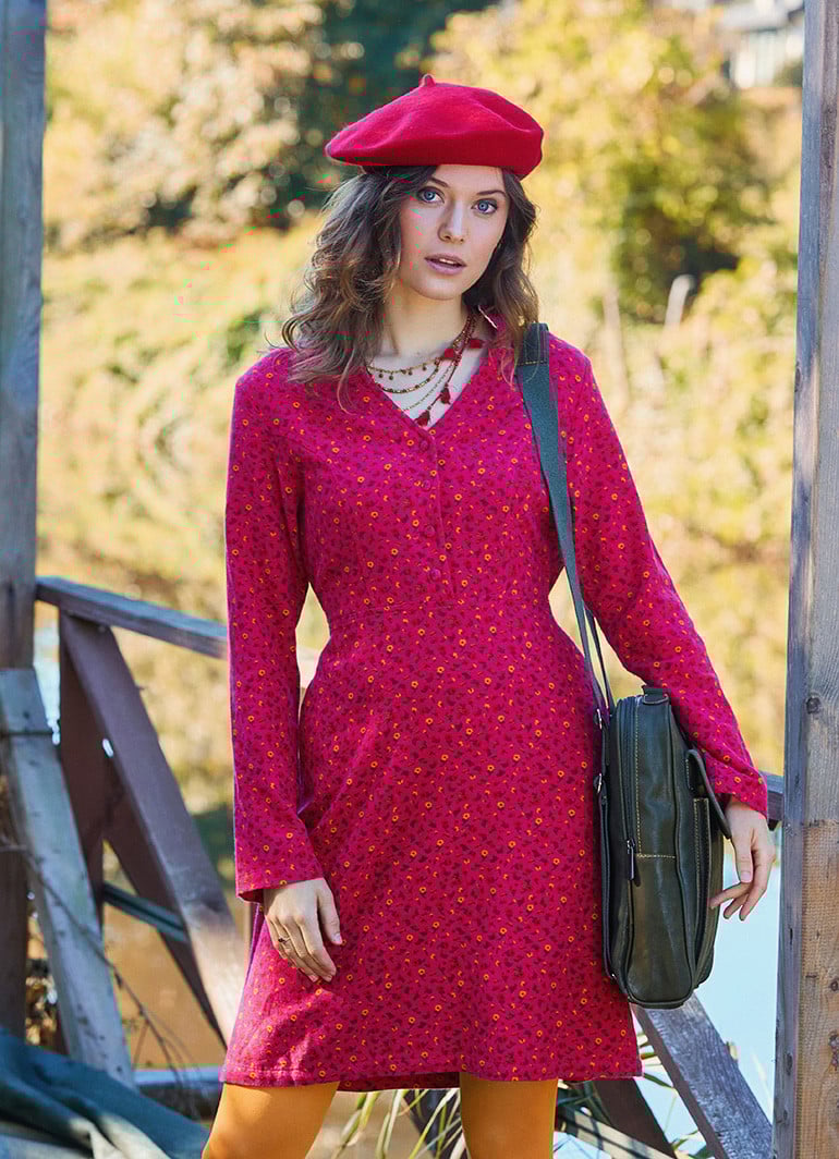 Step into effortless style and comfort with our Fuchsia Flannel Dress with a Grandad Collar and Button Detail. Designed for modern women who value both elegance and practicality, this dress offers a flattering fit with a charming V-neck and button-down front that adds a subtle yet stylish touch.