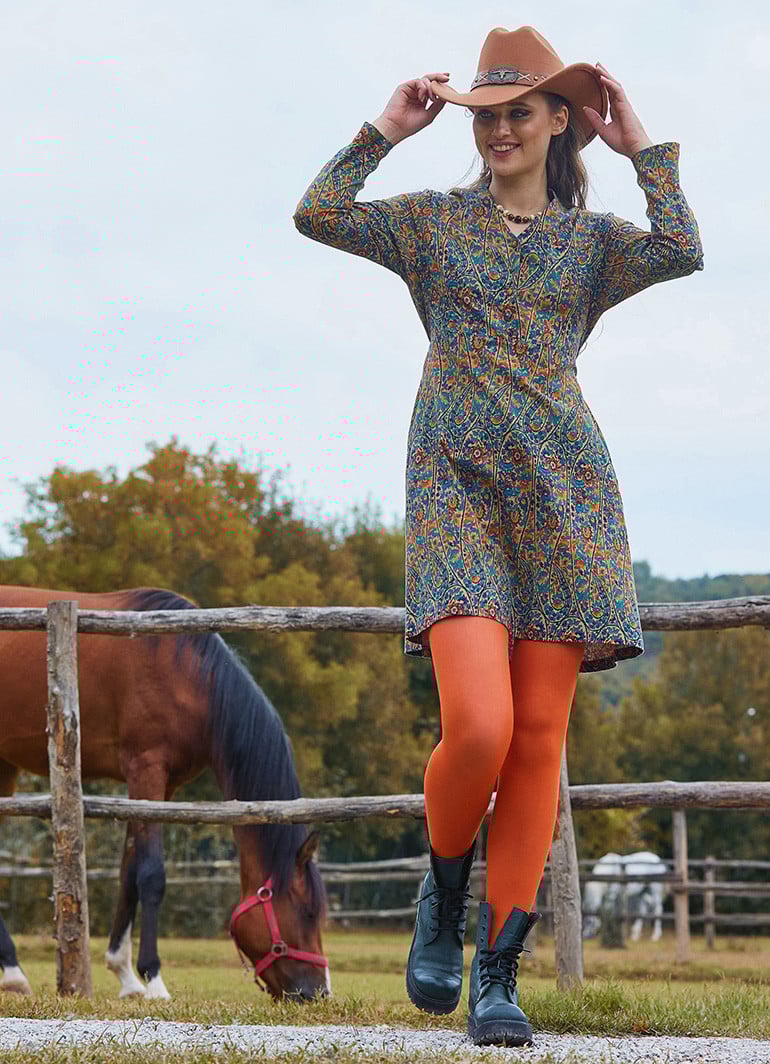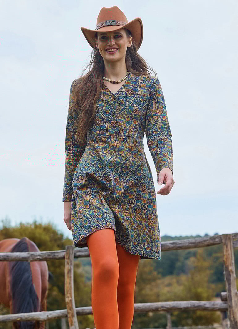 Designed with long sleeves and a comfortable V-neck, this dress ensures effortless style while providing cozy warmth. Its breathable 100% woven cotton fabric guarantees all-day comfort without the heaviness of synthetic materials.
