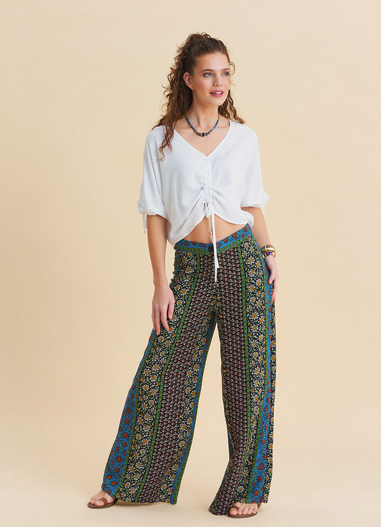 The side zipper closure provides a clean and minimal look, while the wide-leg palazzo design creates elegant movement with every step. The floral pattern combined with an authentic/ethnic style makes this piece easy to style for everyday outfits, vacation looks, or relaxed summer combinations.
