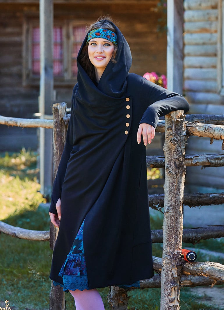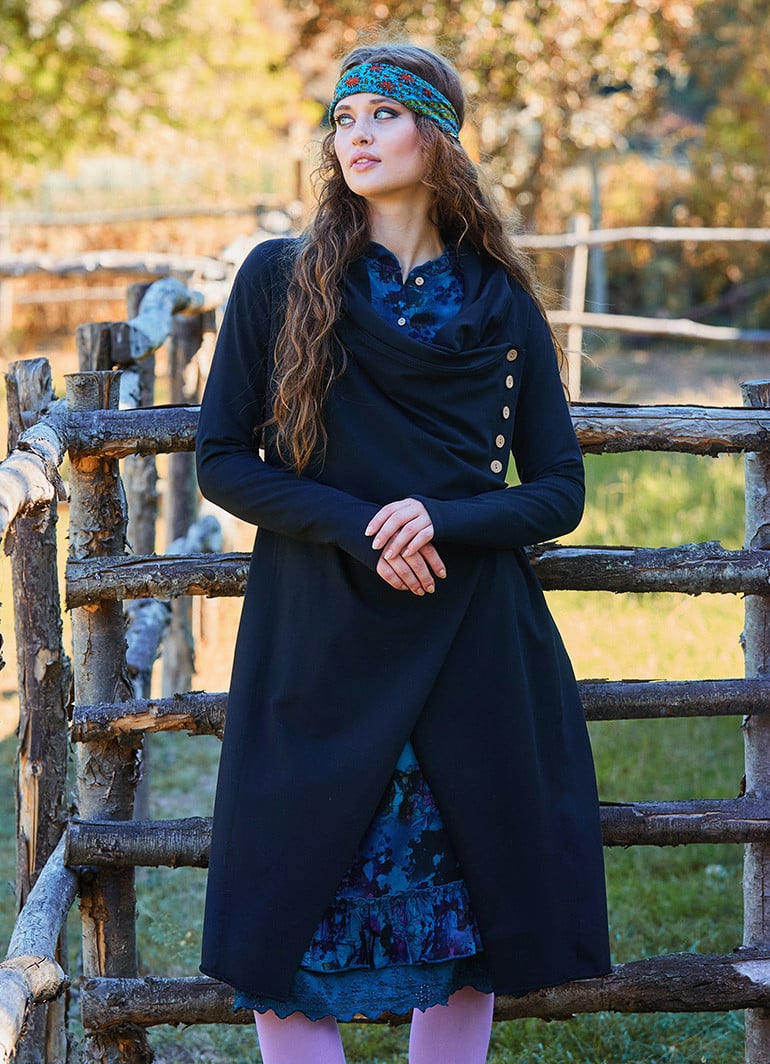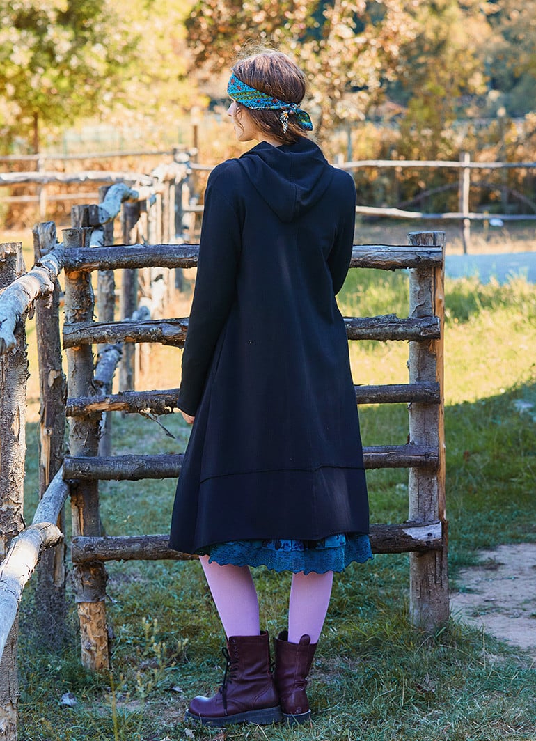 Wrap yourself in effortless bohemian style with our Hooded Black Bohemian Cardigan with Thumbhole Button Detail (4693). The breathable cotton-rich knit delivers all-day comfort, while a touch of Lycra adds gentle stretch that moves with you.