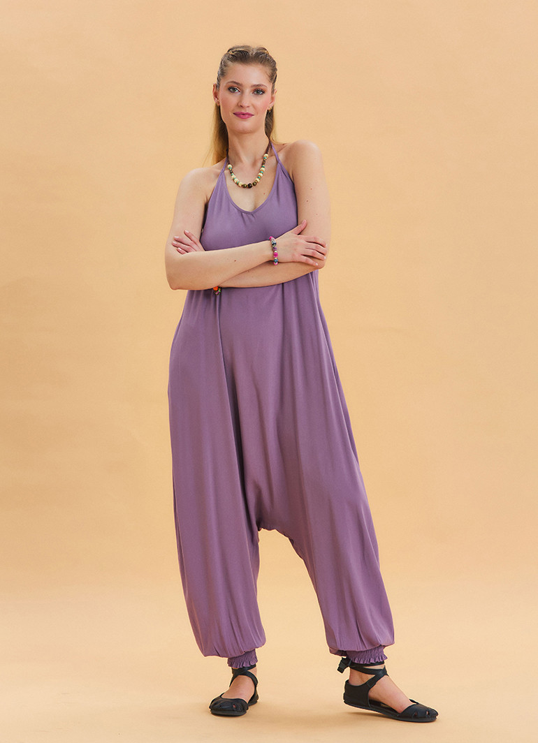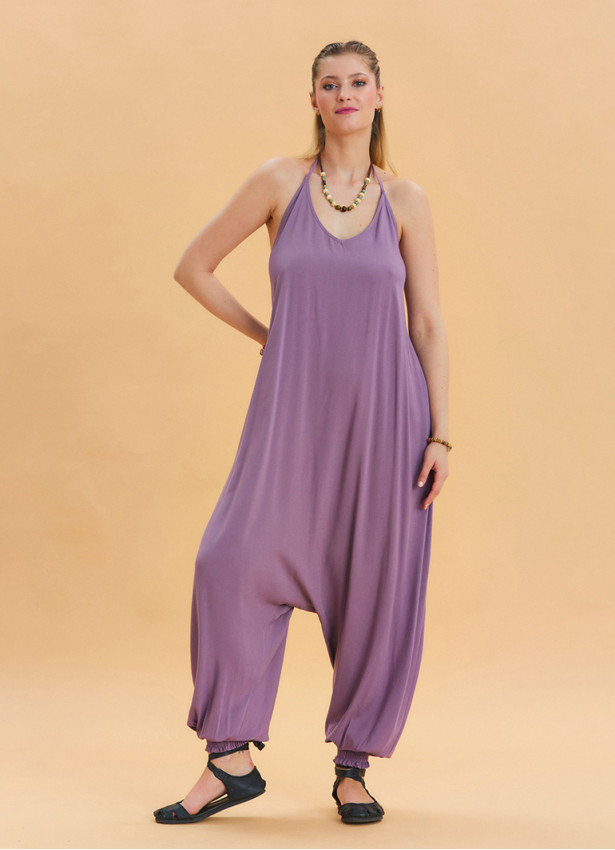 Discover the allure of bohemian chic with our Lilac Bohemian Jumpsuit with Elasticated Legs and Tied Neck 4486. This eye-catching piece blends soft, feminine hues with a unique design that features a delicately tied neck and comfortable elasticated legs, perfect for accentuating your natural curves.