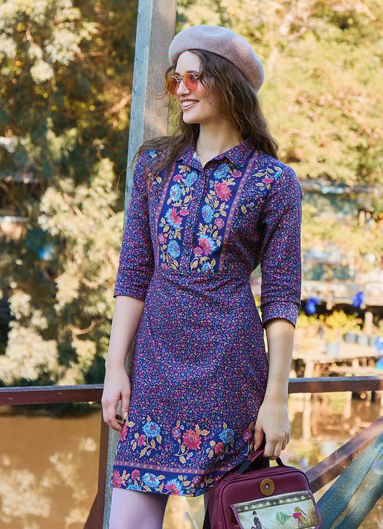 Meet your new go-to winter staple: the Pink Floral Winter Dress with Shirt Collar and Button Detail. Designed for women who want seasonal warmth without sacrificing feminine style, this dress combines a soft woven cotton fabric with a refined ethnic-inspired floral print. The neat shirt collar and button-front detail add structure and polish, while the flowing cut flatters through the waist and skims the hips for an elegant silhouette.