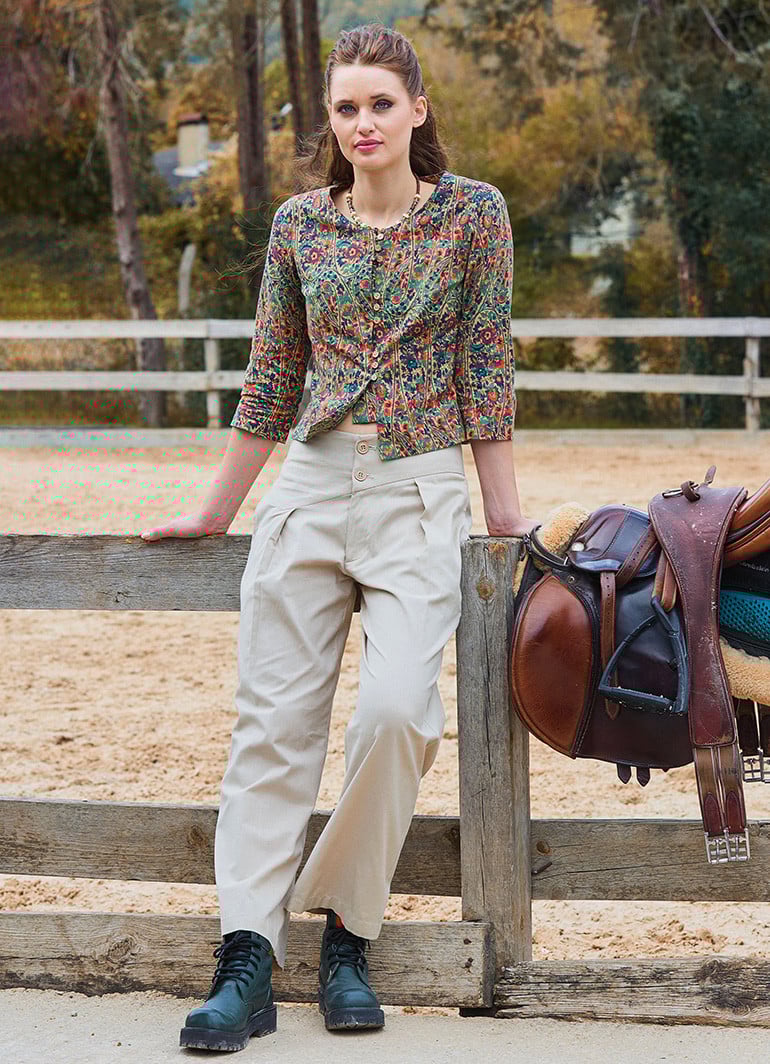 Available in a range of sizes, each pair is tailored to accentuate your natural silhouette. The model, showcasing the size S, exemplifies how these trousers blend comfort with contemporary style.