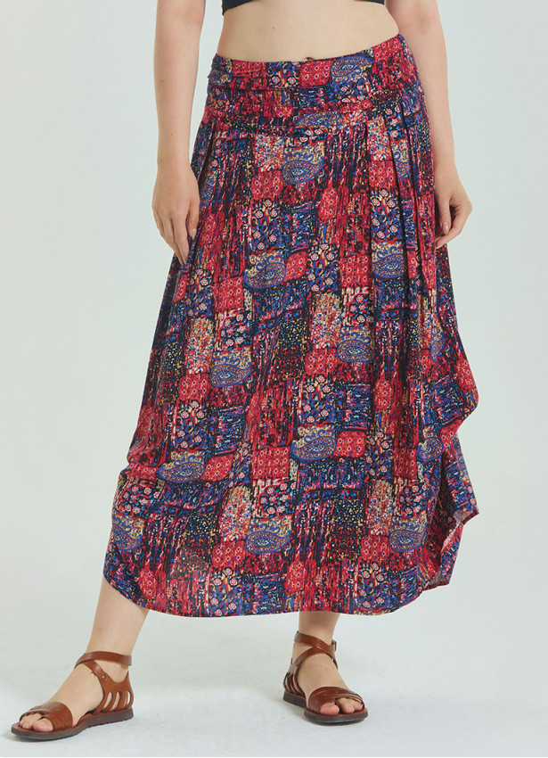 Make a bold statement this summer with our Red Patterned Plus Size Skirt with Elastic Waist and Drape Detail 4603. Designed for the modern woman, this vibrant red plus size skirt features fluid drape pleats that move gracefully with every step.