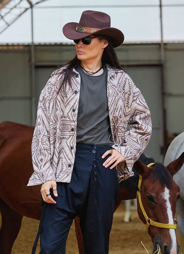 Photographed on a model who is 190 cm tall (chest 96 cm, waist 76 cm, hips 94 cm) to help you visualize the relaxed fit. Whether you're styling a casual weekend outfit or adding texture to a smart-casual look, this shirt balances comfort and character with ease.