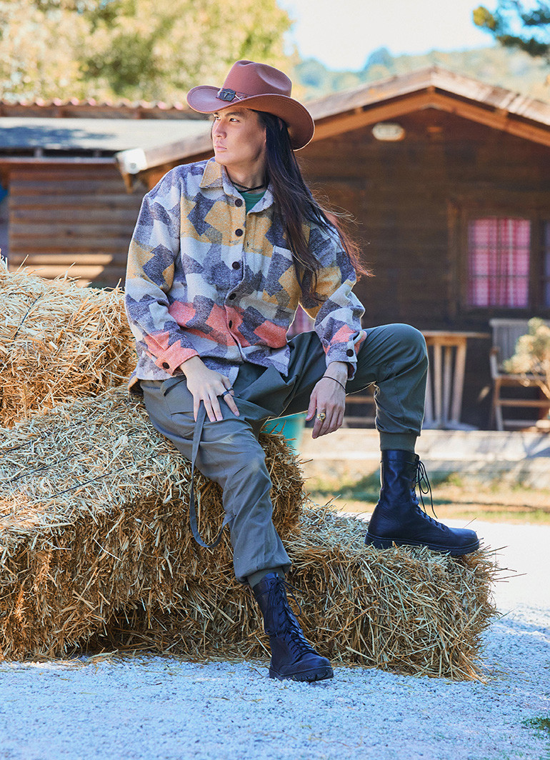 Practical details focus on longevity: machine washable at 30°C and best maintained by turning the garment inside out before washing. Wash with similar colors to keep the tones bright. It is recommended to turn it inside out before washing and clean it before renovation.