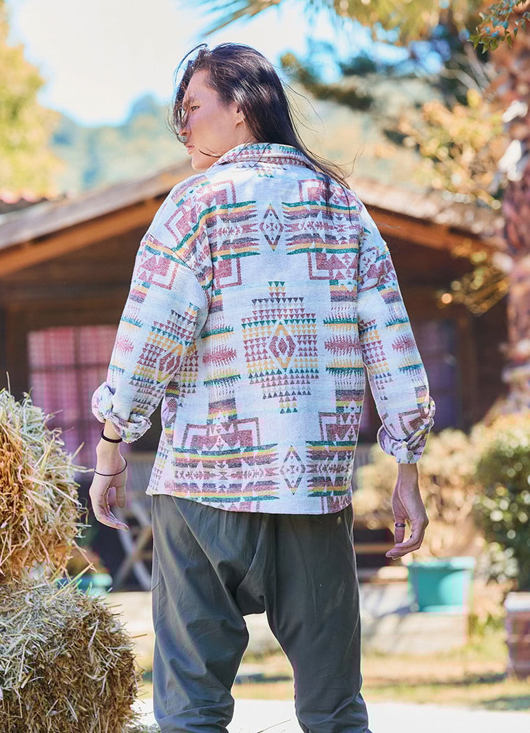 Easy to maintain and durable, this shirt is machine washable at 30°C. Follow care recommendations—turn it inside out before washing and clean before renovation—to keep it looking fresh and vibrant wear after wear. Experience timeless style with a contemporary bohemian twist.