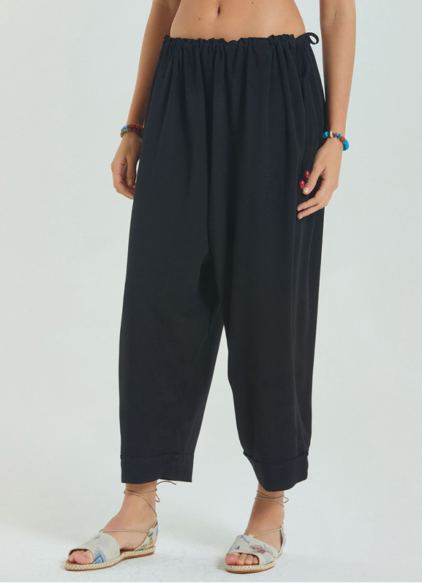 - Pattern: Timeless solid black silhouette accented by a rope-detailed, adjustable waist.