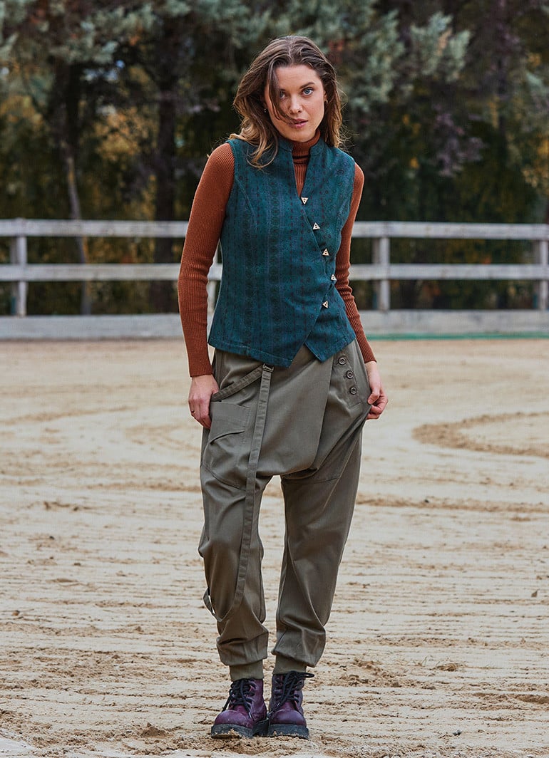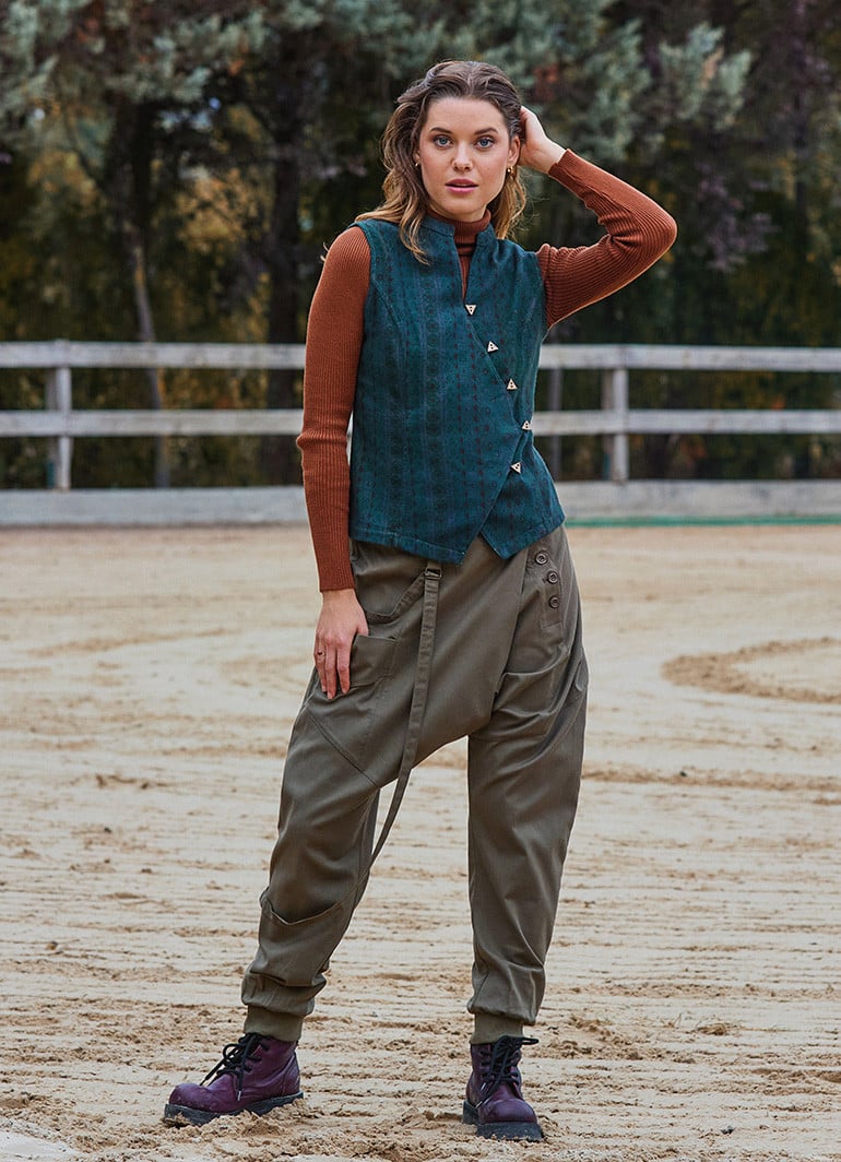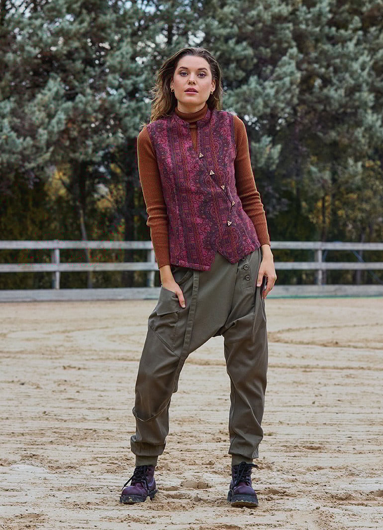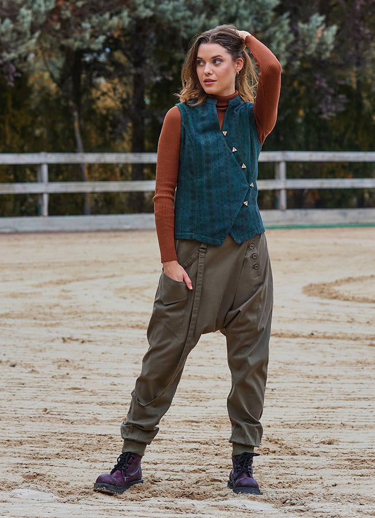 Step into a world of effortless style with our Rope Detailed Buttoned Elastic Waist Earth Bohemian Shalwar – a standout piece that marries comfort with chic sophistication.