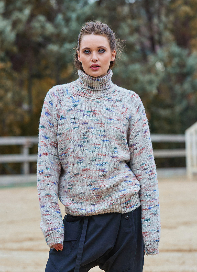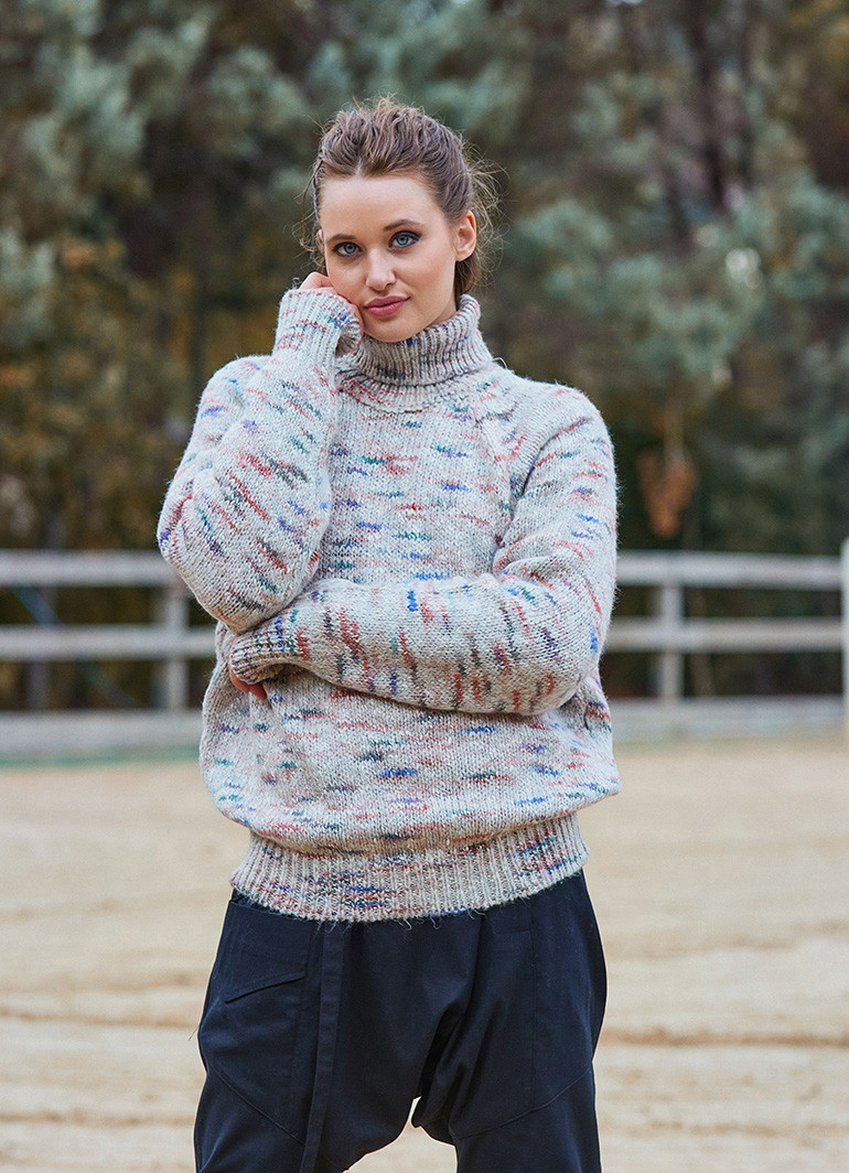 The relaxed loose cut and classic turtleneck design offer a flattering fit for all body types, making it a must-have addition to your seasonal essentials. Perfect for layering or wearing on its own, it effortlessly combines elegance with casual chic.