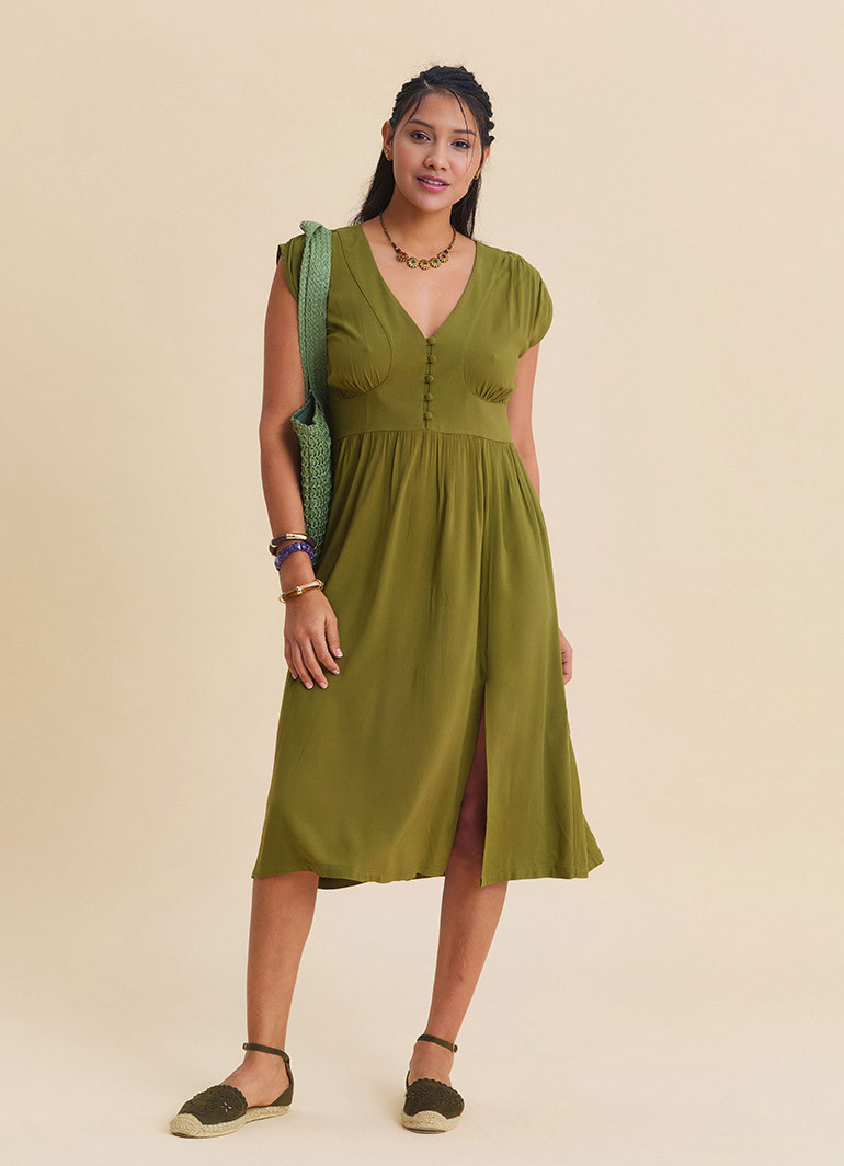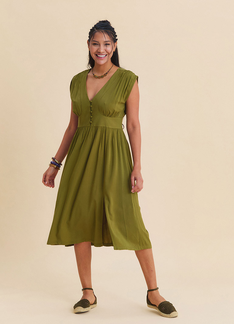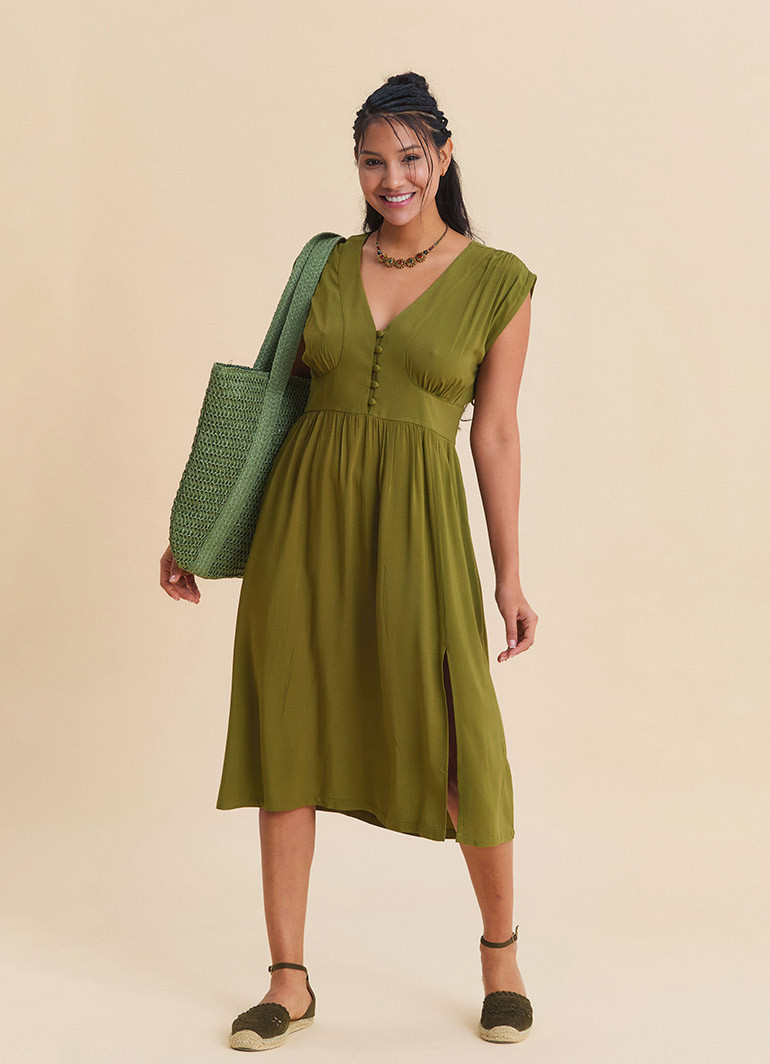 Offering effortless elegance in a single piece, the V-Neck Backless Green Midi Dress 4793 provides breathable comfort on warm days with its lightweight and fluid structure. Its flattering V-neckline and backless design create a feminine balance, while the midi length makes it suitable for both daytime and evening styling.