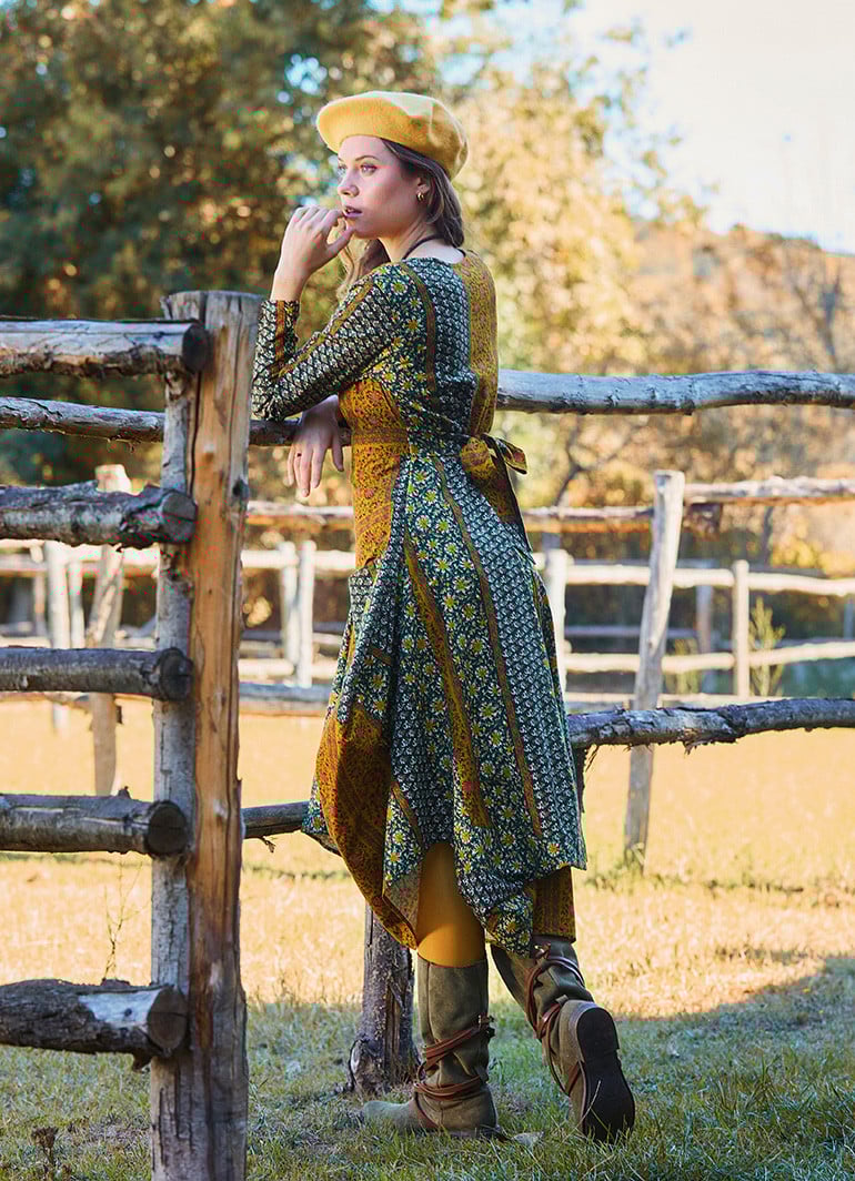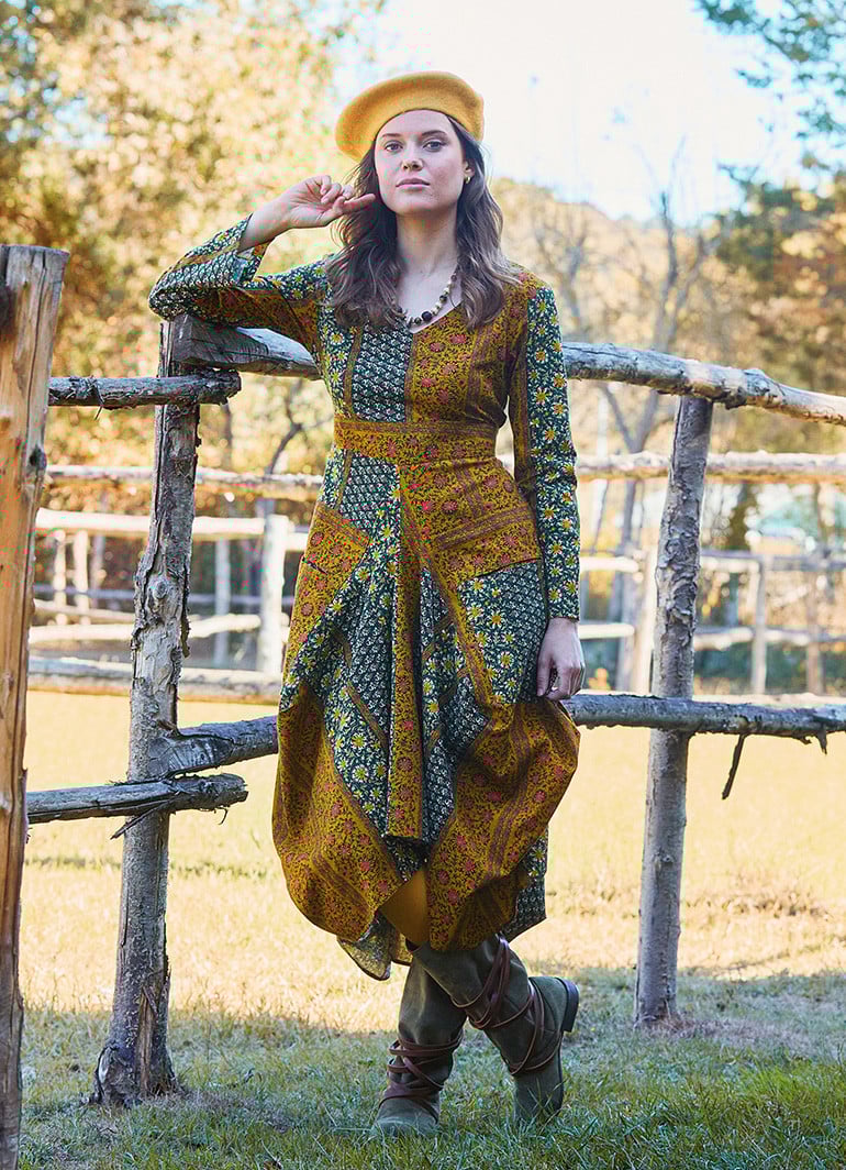 Made from 100% breathable cotton, this dress keeps you comfortable throughout the day, without the heat retention often caused by synthetic fabrics. Its long sleeves make it ideal for cooler seasons, from winter to autumn transitions.