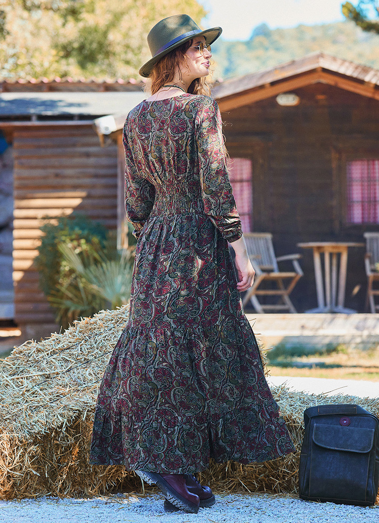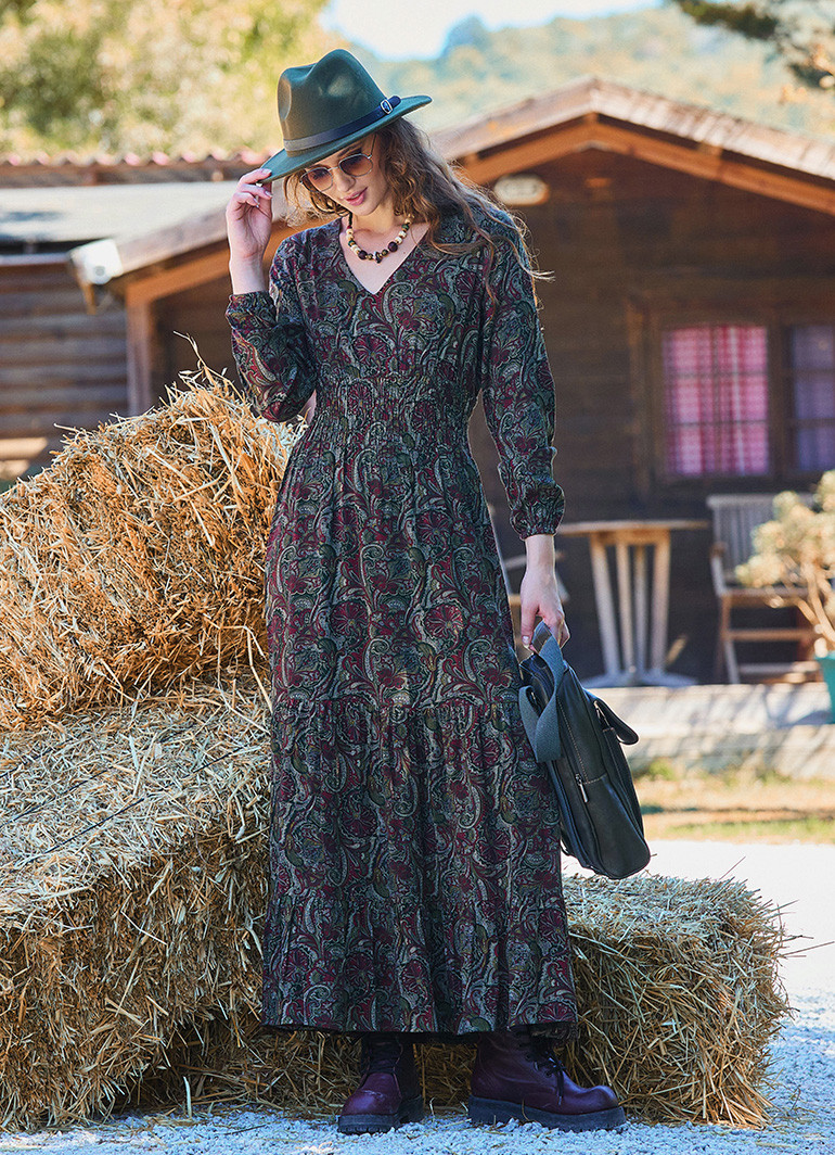 Discover understated elegance with the V Neck Flounced Detailed Khaki Winter Dress 4699 — a refined women's winter dress that combines flowing viscose comfort with tailored, ethnic-inspired detailing. The soft V-neck and delicately flounced tiers create graceful movement, while the gipe paneling adds subtle structure and visual interest.