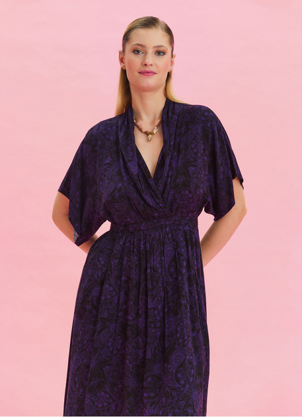 Elevate your summer wardrobe with our V Neck Gathered Detailed Purple Summer Dress 4533—a stunning blend of contemporary style and timeless elegance.
