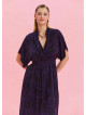 This dress features a sophisticated V-neckline and graceful half sleeves, enhanced by gathered detailing and an elastic waist that promises a comfortable, flexible fit. Its vibrant purple hue and modern design make it the perfect statement piece for warm-weather occasions.