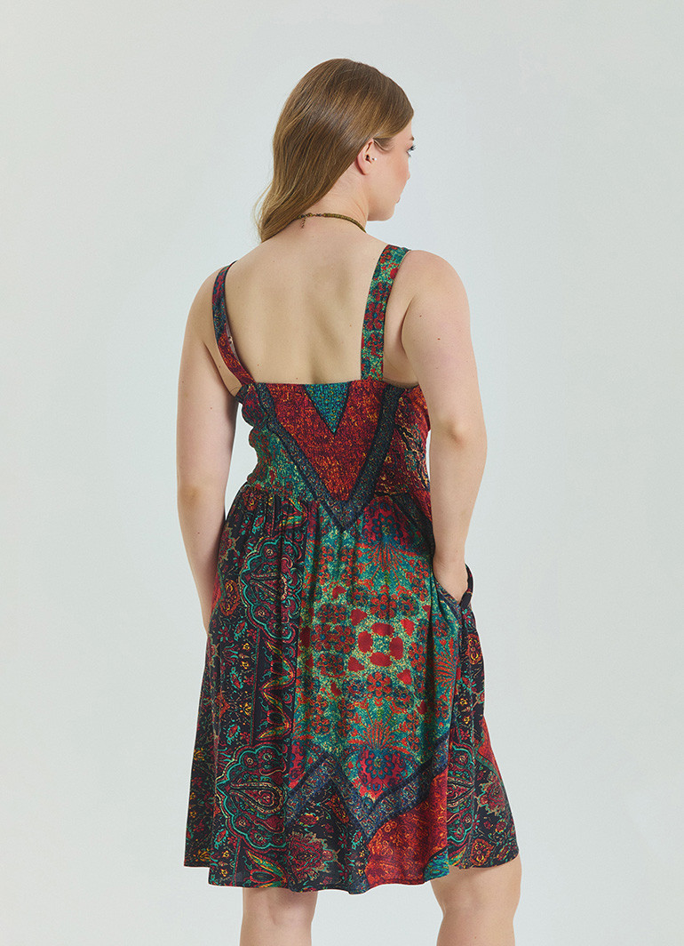 Step into effortless summer elegance with our V-neck black patterned plus-size dress—designed to flatter curves and keep you cool on sunny days. The playful layered overskirt and abstract print create a chic statement for any warm-weather occasion.