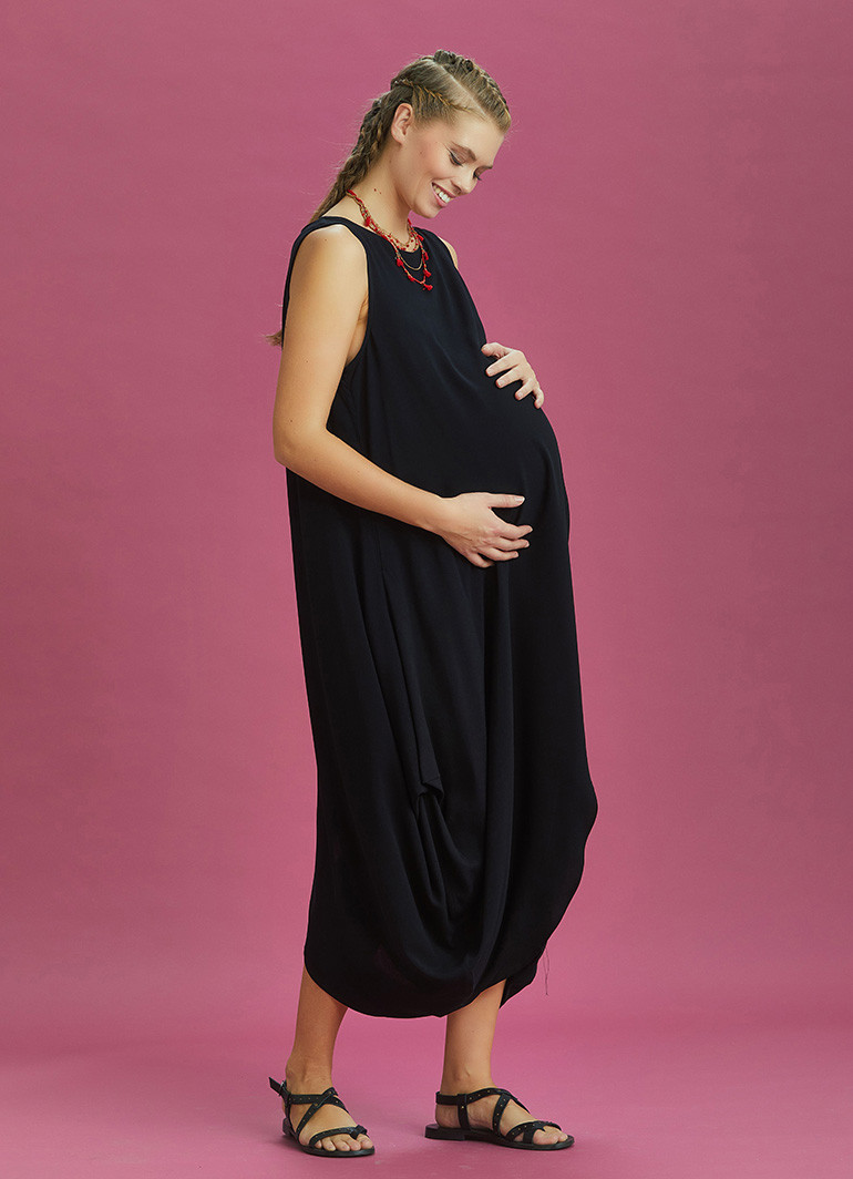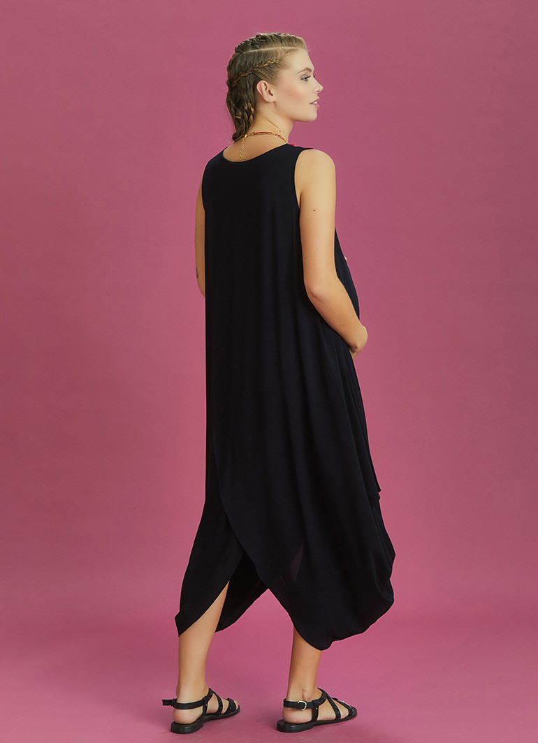 Boat Neck, Diagonal Cut Front Layer Detail, Sleeveless, Baggy Long Dress, Maternity Dress